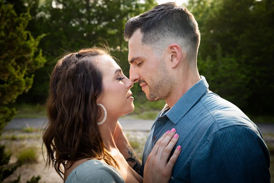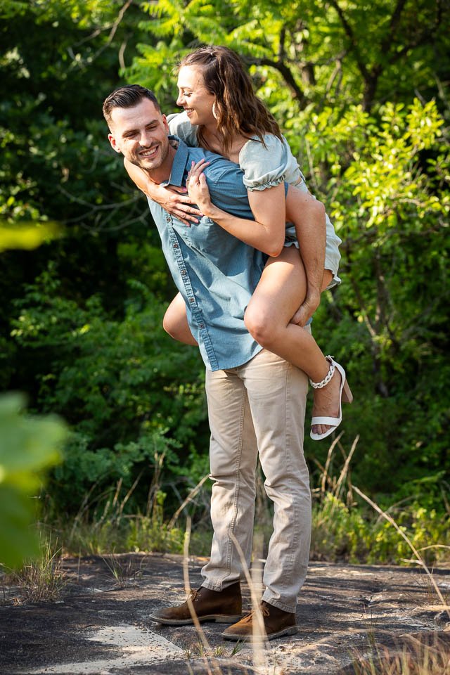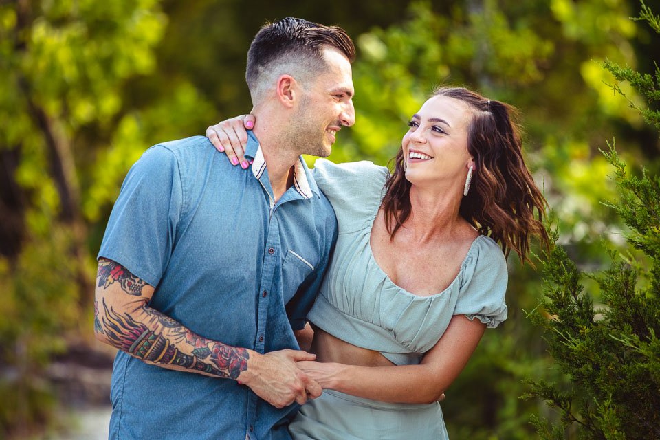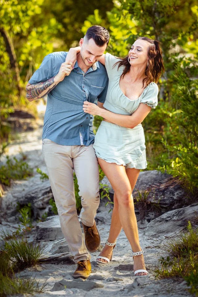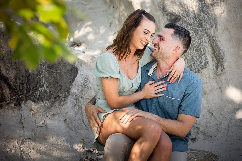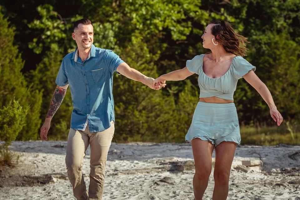 Gabby and Brian wanted to have their engagement session at Klondike Park in St. Charles County. This former quarry was transformed into a breathtaking landscape featuring white sand, dramatic cliffs, a serene lake, and lush greenery—all creating a stunning backdrop for their romantic photos.